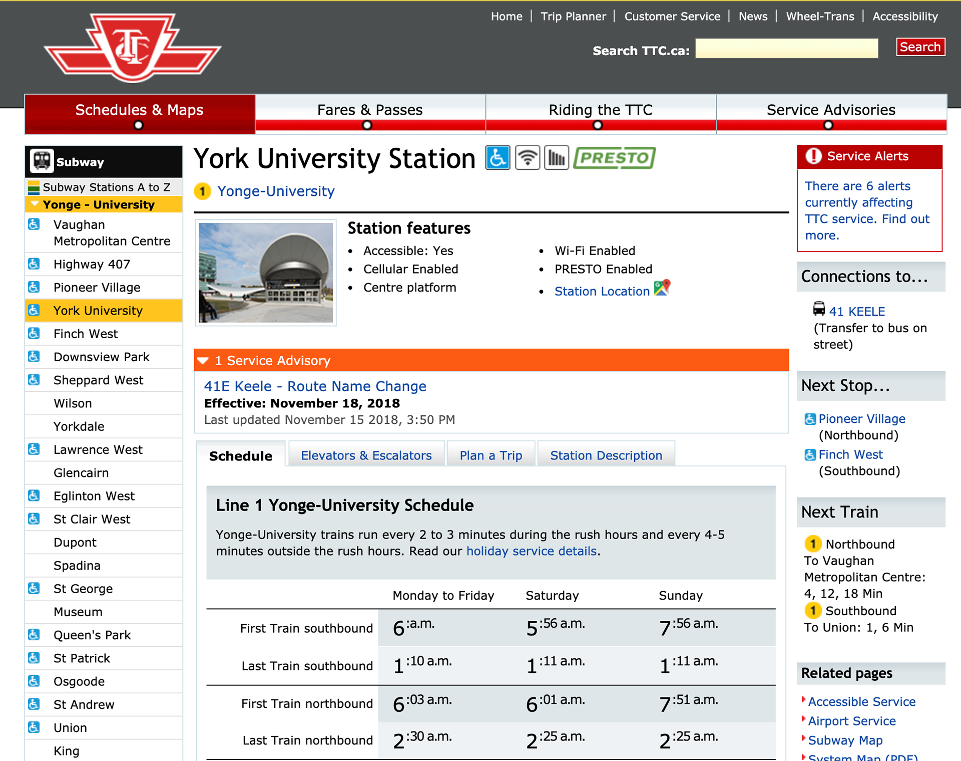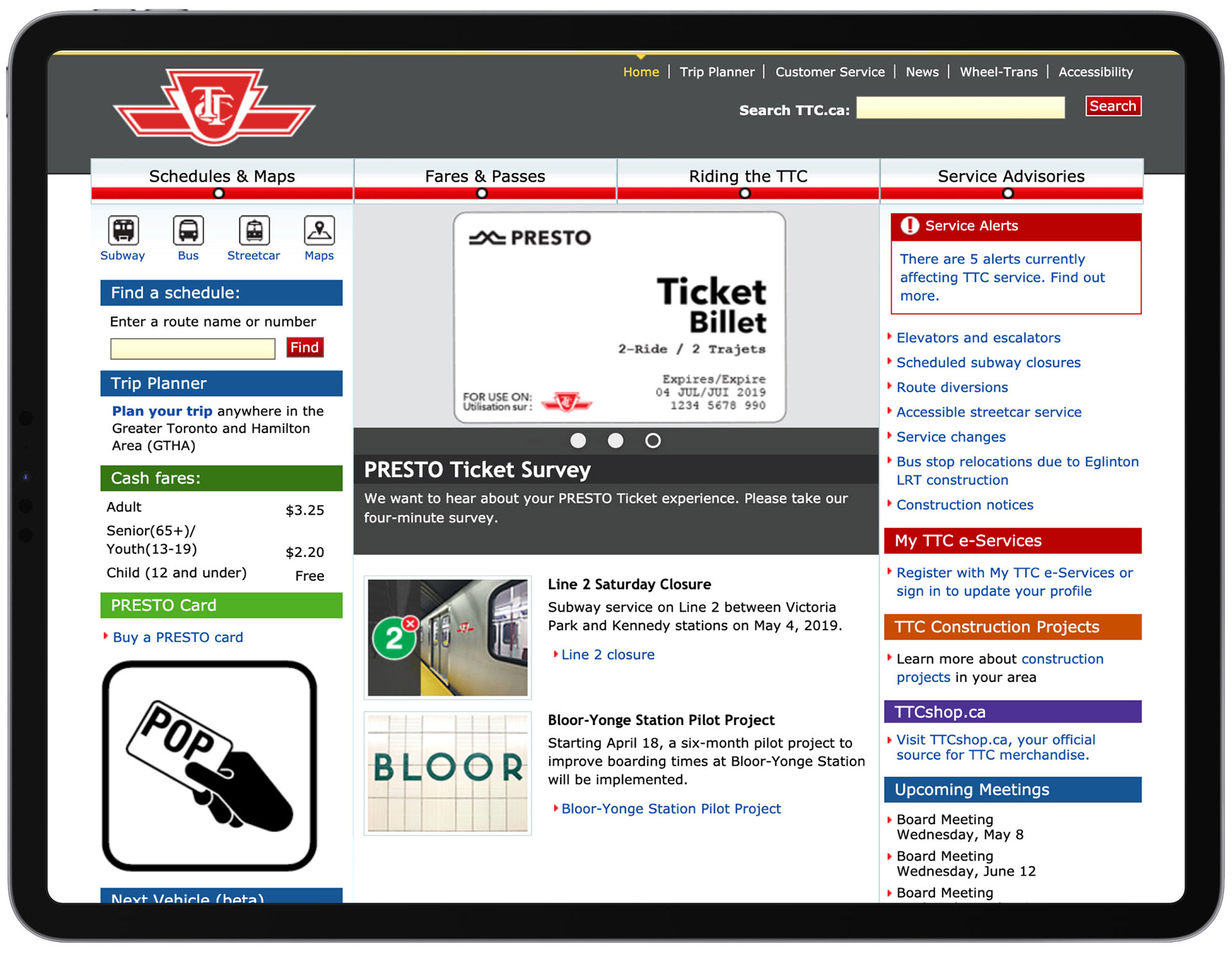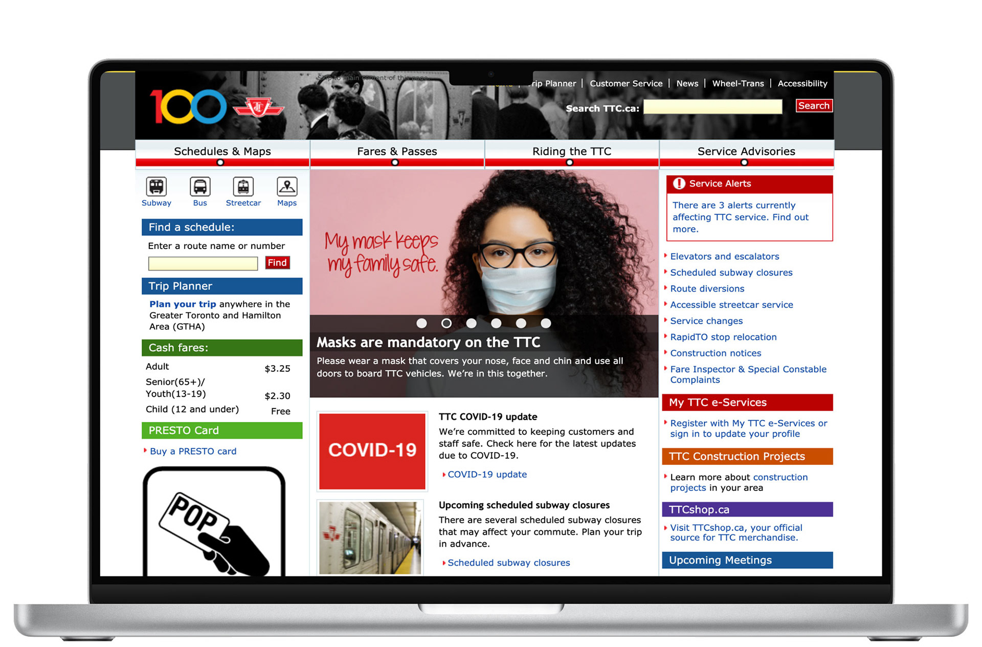 Because most visitors came for service and fare information, our team worked in constant collaboration with Marketing, Service Control, and other operational groups. We ensured that all critical content—bus, streetcar, and subway updates; station details; closures and diversions; accessibility notices; and emergency information—was always current, accurate, and easy to find.